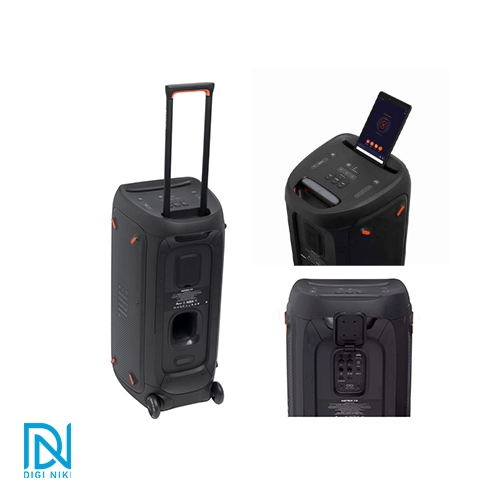 اسپیکر بلوتوثی پارتی باکس 310 با مجهز بودن به درایورهای حرفهای، برای استفاده در محیطهای بزرگ عالی عمل میکند. پارتی باکس JBL 310 با ویژگیهای مثبتی چون قابلیت اتصال به بلوتوث، رقص نور خیرهکننده هماهنگ با موسیقی، باتری پرقدرت و قابلیت حمل آسان در میدان بسیار خوش درخشیده است. با توان خروجی بالا و باس قویای که این اسپیکر دارد، موسیقی را با کیفیت بالا پخش میکند. این اسپیکر حرفهای پرتابل از اتصالات مختلفی مانند بلوتوث، پورت USBو ورودی AUX پشتیبانی میکند و قابلیت کار هم با شبکه برق و هم با باتری را داراست. عملکرد اسپیکر بلوتوثی جی بی ال 310 در انواع موسیقی کمنظیر است. با وجود قابلیت تنظیمات EQ متعددی هم که در آن وجود دارد. باتری اسپیکر پارتی باکس ۳۱۰ عملکرد فوقالعادهای دارد به طوری که طی 3 ساعت شارژ شده و میتواند تا ۱۷ ساعت موسیقی پخش کند. البته میزان مصرف باتری این محصول به نوع موسیقی و بلندی حجم صدا هم بستگی دارد. نکته جالب اینجاست که این بلندگو به اسپیکر مشابه هم وصل میشود و با این کار حجم صدای موسیقی بیشتر شده و محدودهی پوشش صدا افزایش مییابد. شرکت سازنده در اسپیکر PartyBox 310 پورت ورودی میکروفون هم در نظر گرفته تا برای اجرا یا گفتوگو هیچ مشکلی نداشته باشید. علاوه بر ورودی میکروفون، دکمه تنظیم ساز گیتار هم در این بلندگو تعبیه شده تا برای اجرا زنده هم بسیار کاربردی باشد.